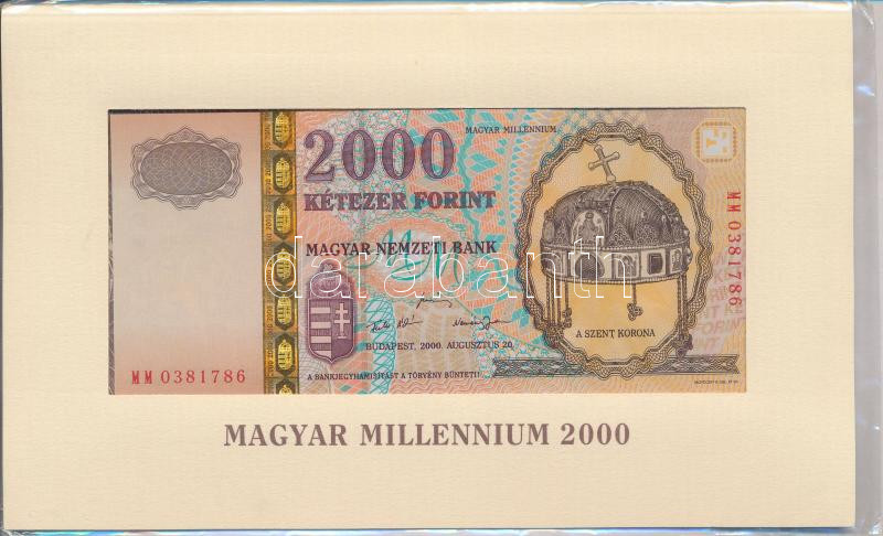 2000. 2000Ft "Millennium" eredeti, bontatlan csomagolásban T... https://www.darabanth.com/hu/282-Gyorsarveres/282.0/Numizmatika/Magyar-bankjegyek~300006/2000-2000Ft-Millennium-eredeti-bontatlan-csomagolasban-TI~II1458409