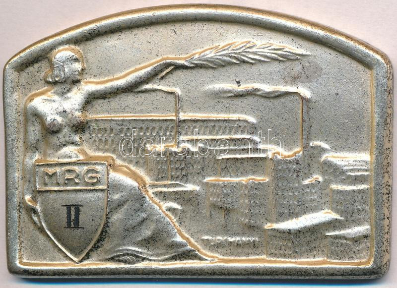 Leírás: ~1938. "MRG" ezüstözött Br sportplakett (109,3g/51x73mm) T:2