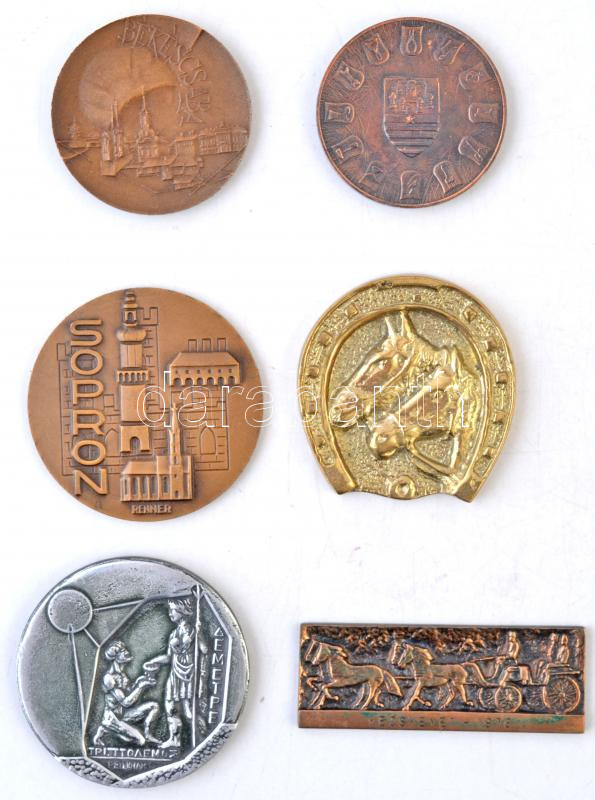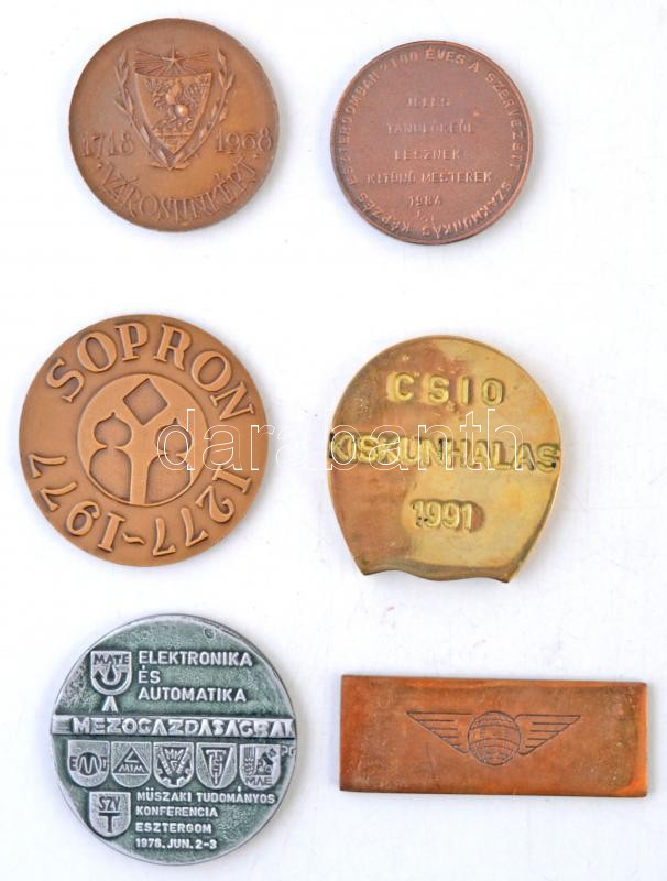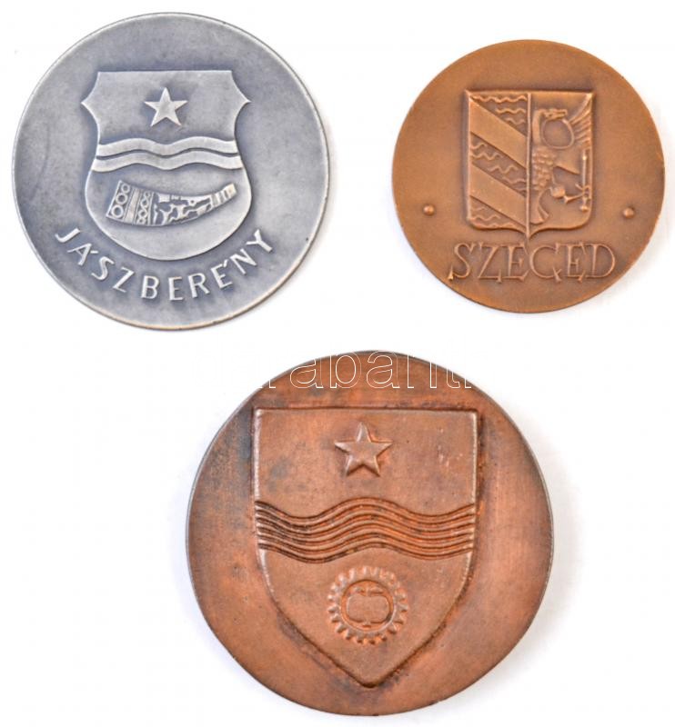 Leírás: 9db-os emlékérem és plakett tétel, magyar városok: Kecskemét, Békéscsaba, Jászberény, Szeged, Mátészalka, Sopron, Esztergom (2xklf), Kiskunhalas T:2
