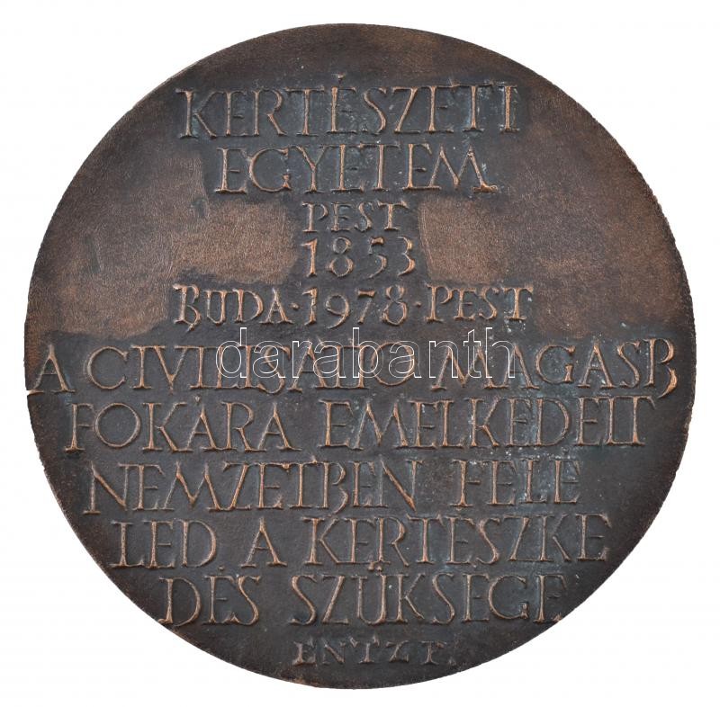 Kiss Nagy András (1930-1997) 1978. "Kertészeti Egyetem - Pest 1853 - Buda 1978 Pest - A civilisatio magasb fokára emelkedett nemzetben feléled a kertészkedés szüksége - Entz F." kétoldalas Br plakett (99mm) T:2