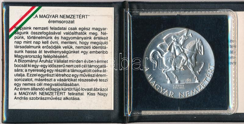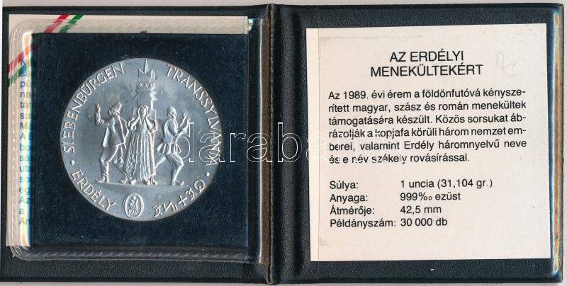 Leírás: Kiss Nagy András (1930-1997) 1989. "Az Erdélyi Menekültekért" Ag emlékérem műbőr tokban és tanúsítvánnyal (31g/0.999/42,5mm) T:1 kis patina