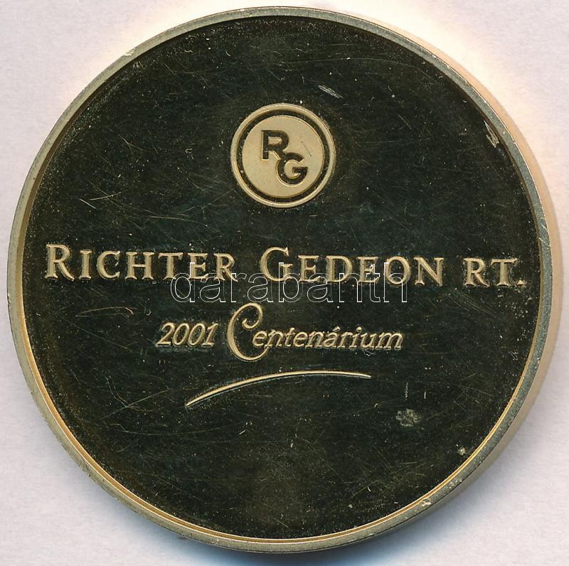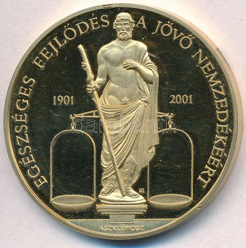 Leírás: Kósa István (1953-) 2001. "Richter Gedeon RT. 2001 Centenárium / Egészséges fejlődés a jövő nemzedékéért - Aszklépiosz" aranyozott fém emlékérem dísztokban (42,5mm) T:PP felületi karc, ph.
