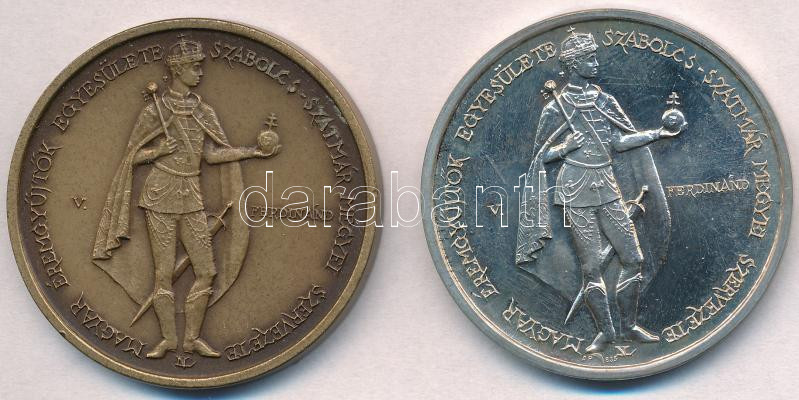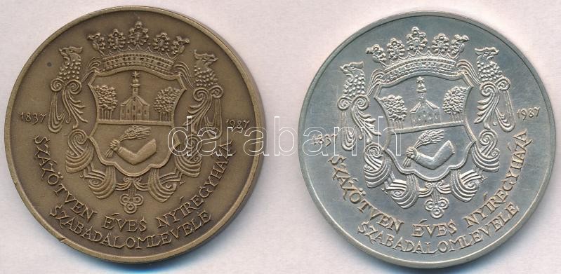 Nagy Lajos (1949-) 1987. "MÉE Szabolcs-Szatmár megyei szervezet / Százötven éves Nyíregyháza szabadalomlevele 1837-1987 - V. Ferdinánd" Ag és Br emlékérem pár (36,13g/0825/42,5mm) T:1,1- kis ph.