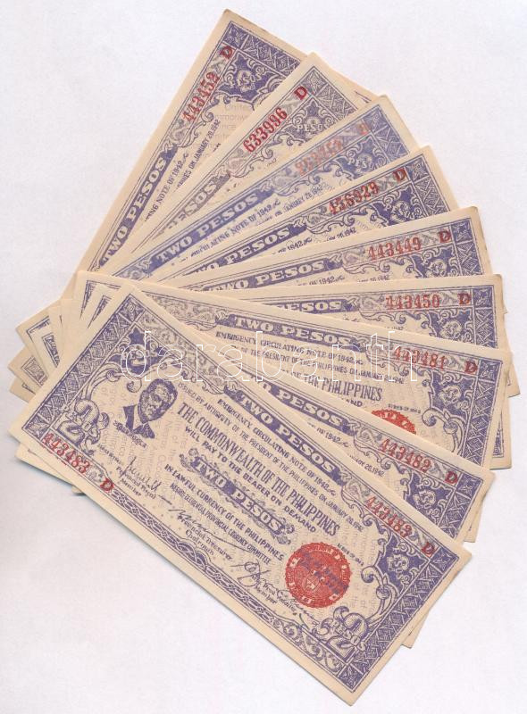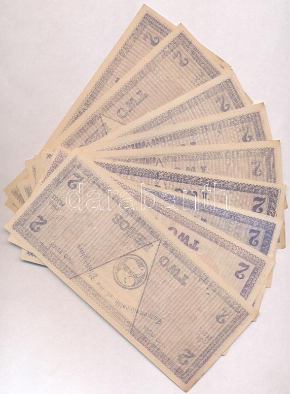 Fülöp-szigetek 1942. 2P (9x) szükségpénz, amely az emigráns kormány nevében készült, közte 5db sorszámkövető (3+2) T:I-