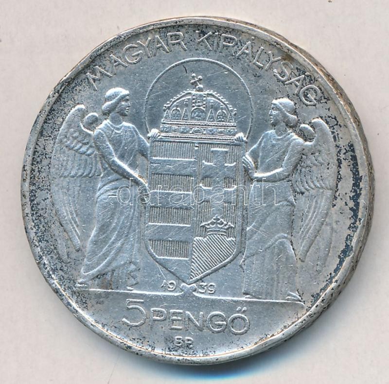 Leírás: 1939. 5P Ag "Horthy balra" T:2,2- ph.