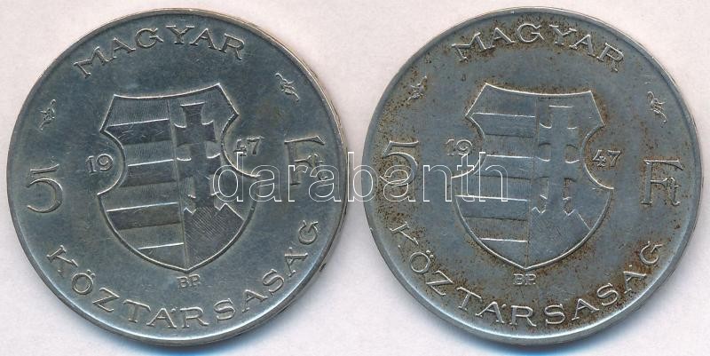 Leírás: 1947. 5Ft Ag "Kossuth" (2x) T:2,2- patina