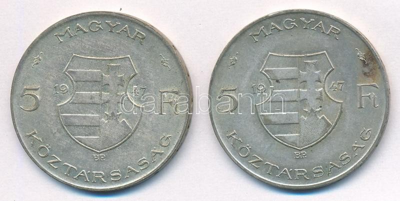 Leírás: 1947. 5Ft Ag "Kossuth" (2x) T:2 kis patina