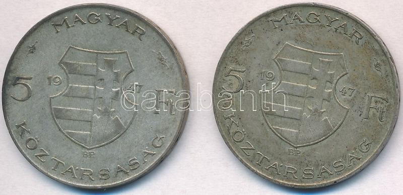 Leírás: 1947. 5Ft Ag "Kossuth" (2x) T:2- ph., patina