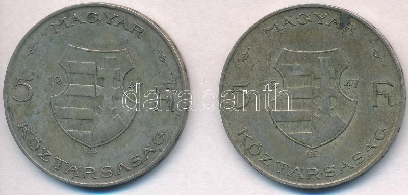 Leírás: 1947. 5Ft Ag "Kossuth" (2x) T:2- ph., patina