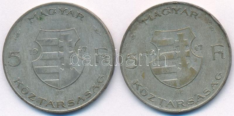 Leírás: 1947. 5Ft Ag "Kossuth" (2x) T:2- ph., patina