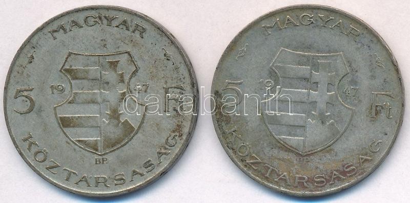 Leírás: 1947. 5Ft Ag "Kossuth" (2x) T:2- ph., patina