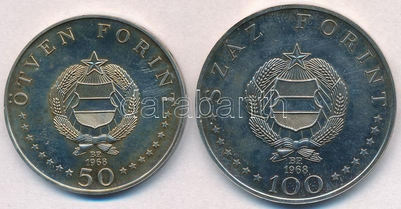 Leírás: 1968. 50Ft Ag + 100Ft Ag "Semmelweis pár" T:1- patina, apró ph.