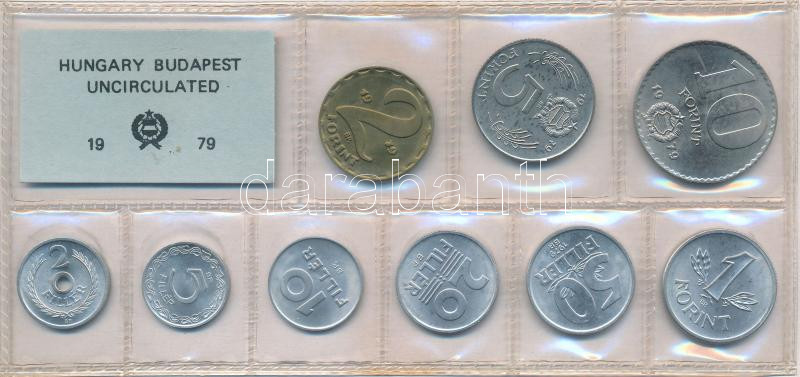 Leírás: 1979. 2f-10Ft (10xklf), érmés forgalmi sor fóliatokban T:1