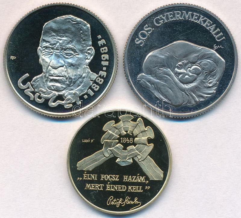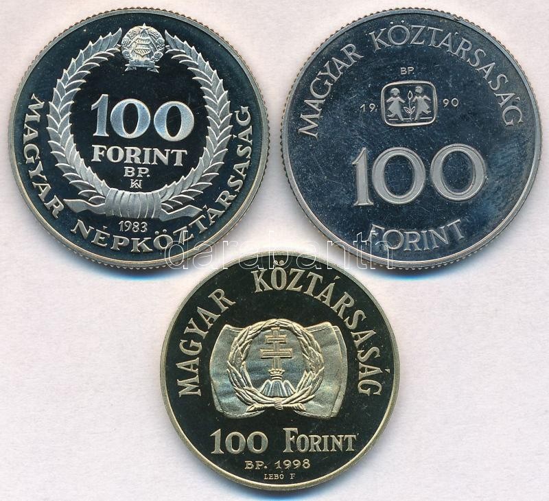 Leírás: 1983. 100Ft alpakka "Czóbel Béla" + 1990. 100Ft Cu-Ni "S.O.S. Gyermekfalu" + 1998. 100Ft alpakka "1848-49 Szabadságharc 150. évfordulójára" T:1-,2 (PP)