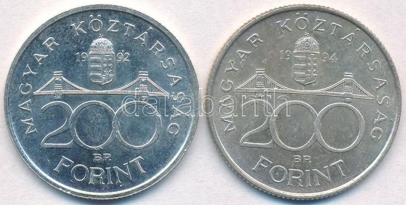 Leírás: 1992. 200Ft Ag "MNB" + 1994. 200Ft Ag "Deák" T: