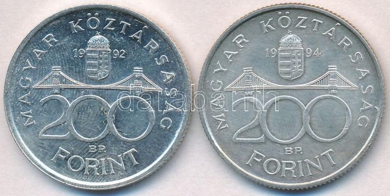 Leírás: 1992. 200Ft Ag "MNB" + 1994. 200Ft Ag "Deák" T:2