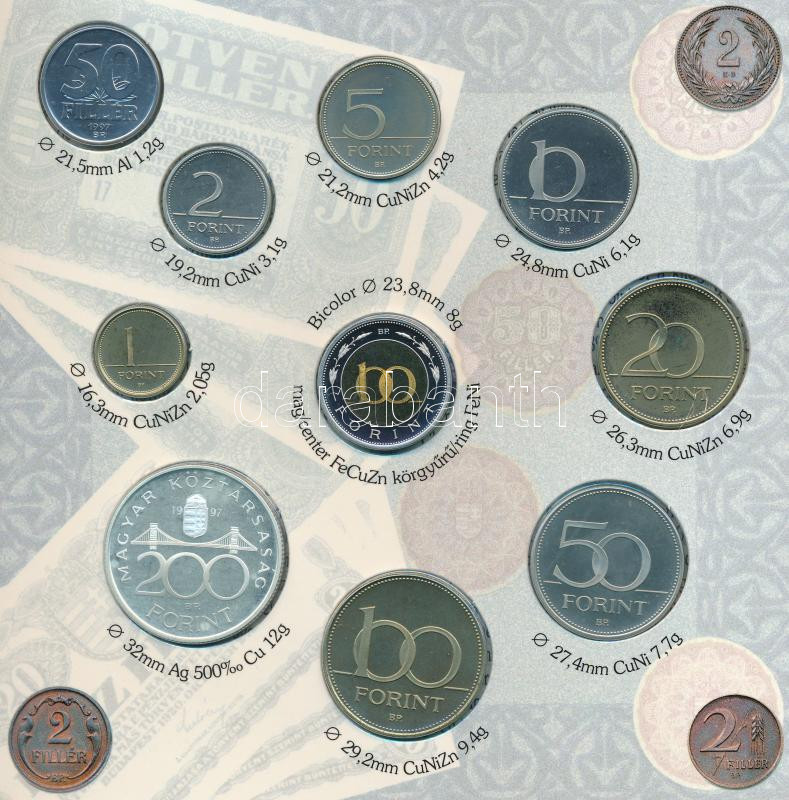 Leírás: 1997. 50f-200Ft 10klf db, benne 200Ft Ag "Deák", szettben T:PP