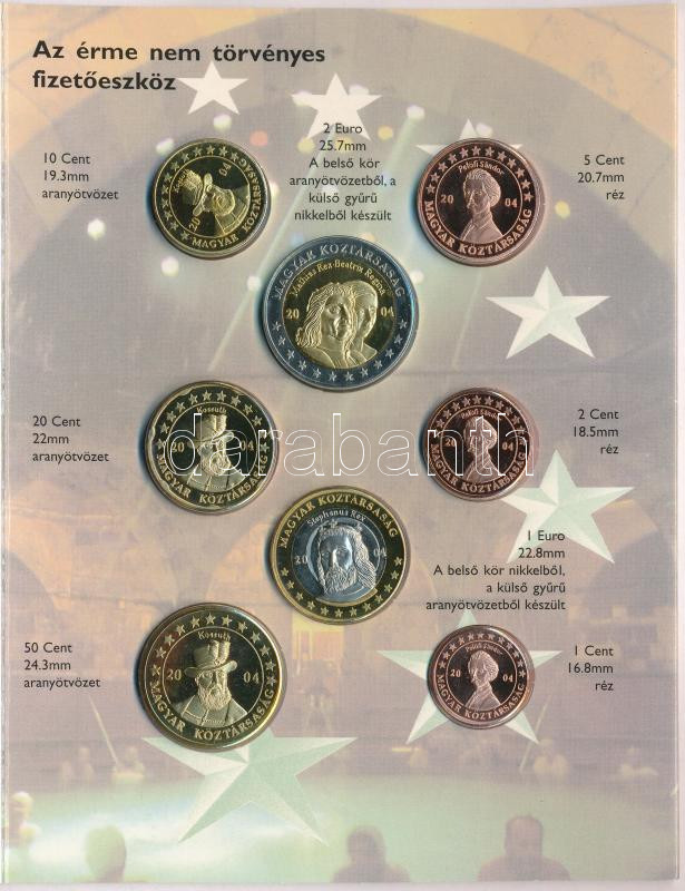 Leírás: 2004. 1c-2E "Euro próbaveretek" (8xklf) fémpénz szettben, díszkiadás T:BU