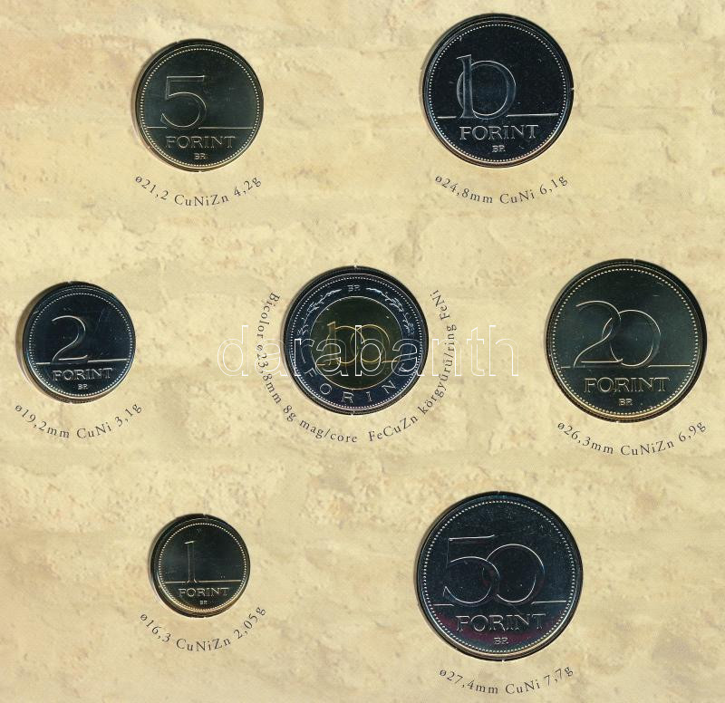 2005. 1Ft-100Ft (7xklf) forgalmi sor szettben + 2005. 10Ft "Józse... https://www.darabanth.com/hu/282-Gyorsarveres/282.0/Numizmatika/Magyar-es-magyar-verdejelu-fem-es-ezustpenzek~300007/2005-1Ft-100Ft-7xklf-forgalmi-sor-szettben-plus-2005-10Ft-Jozsef-Attila-TBU---Adamo-FO39~II1454312