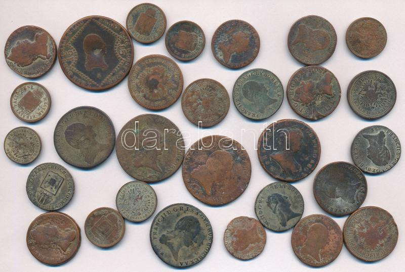 Leírás: 29db-os vegyes magyar és külföldi rézpénz tétel, főleg magyar krajcárok T:vegyes, sérültek is