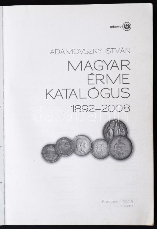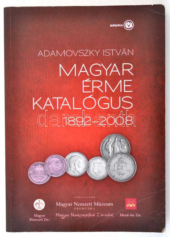 Adamovszky István: Magyar Érme Katalógus 1892-2008. Budapest Adamo, 20... https://www.darabanth.com/hu/282-Gyorsarveres/282.0/Numizmatika/Numizmatikai-irodalom~300002/Adamovszky-Istvan-Magyar-Erme-Katalogus-1892-2008-Budapest-Adamo-2008-I-kiadas~II1459748