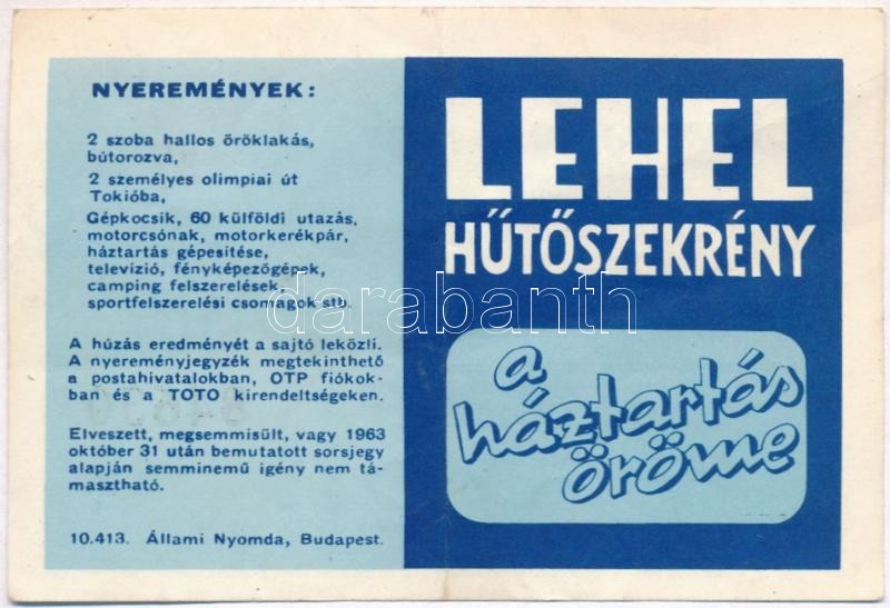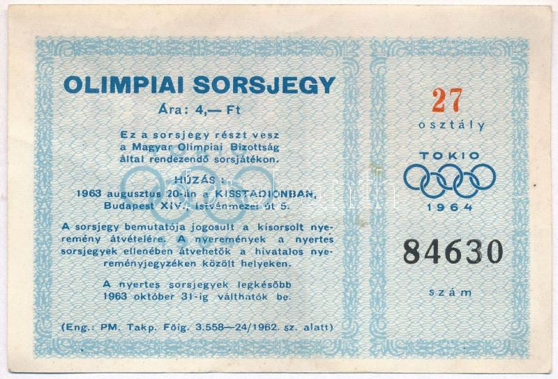 Leírás: 1963. "Olimpiai Sorsjegy - Tokio 1964" sorsjegy 4Ft értékben T:III