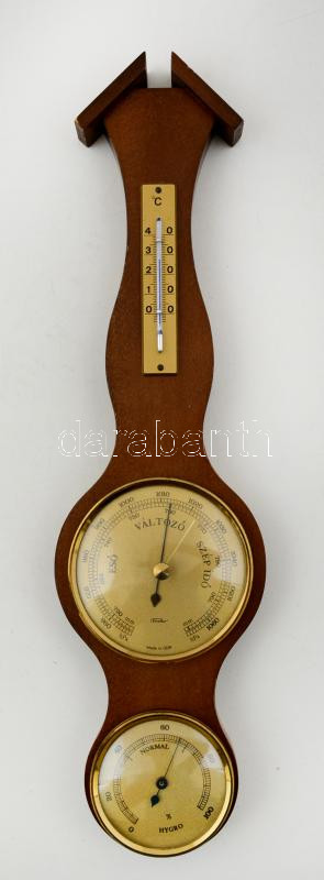 Barométer, hőmérővel és páratartalom mutatóval, m: 38 cm https://www.darabanth.com/hu/283-Gyorsarveres/283.0/Festmeny-mutargy-papirregiseg-egyeb/Bolhapiac~12/Barometer-homerovel-es-paratartalom-mutatoval-m-38-cm~II1463439