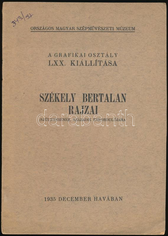 1935 Székely Bertalan rajzai. (Születésének századik évfordulójára.) Budapest, 1935, Országos Magyar Szépművészeti Múzeum, 14 p. Kiadói papírkötés. Jó állapotban.
