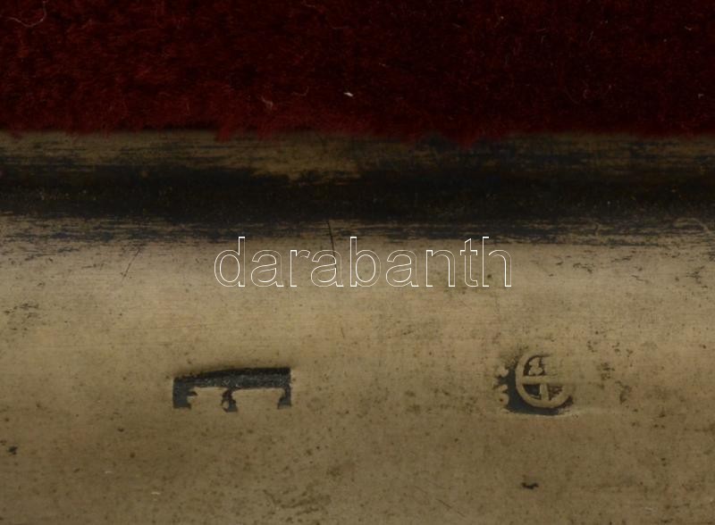 Leírás: Antik ezüst (Ag.) tűpárna?, jelzett, grófi címerrel, alján fa betéttel, 10×10 cm