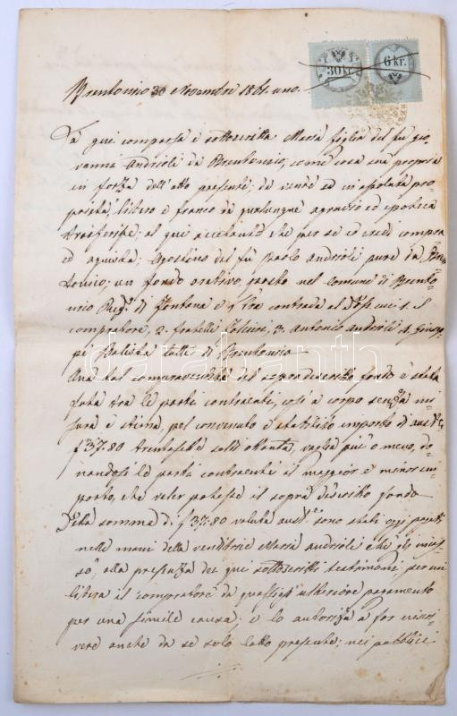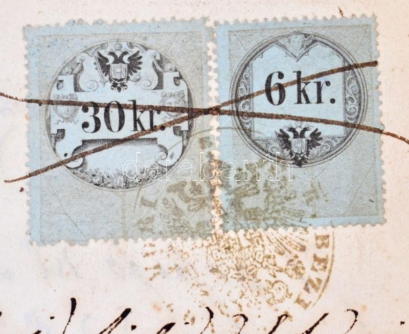 Leírás: 1861 Osztrák okmány 6kr + 30kr okmánybélyegekkel