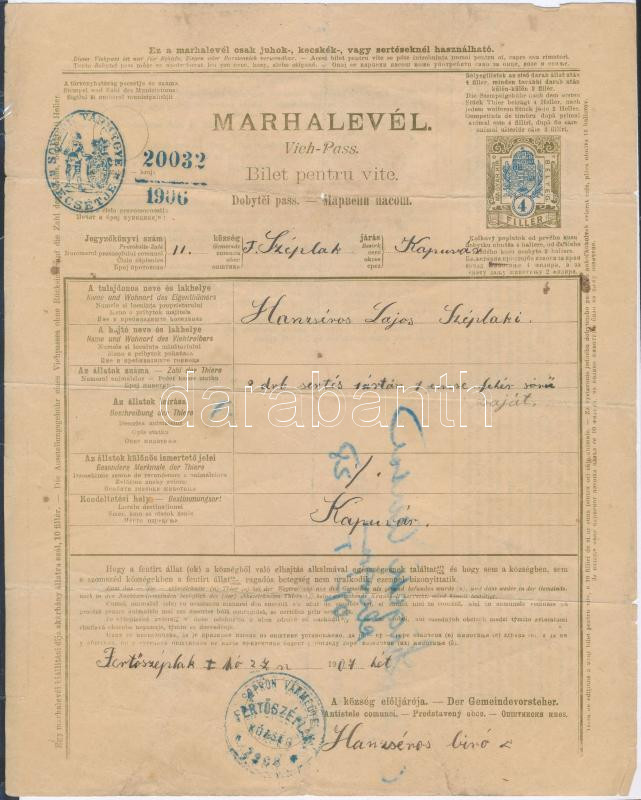 1907 Marhalevél 2f okmánybélyeggel https://www.darabanth.com/hu/283-Gyorsarveres/283.0/Festmeny-mutargy-papirregiseg-egyeb/Okmanyok~17/1907-Marhalevel-2f-okmanybelyeggel~II1467280