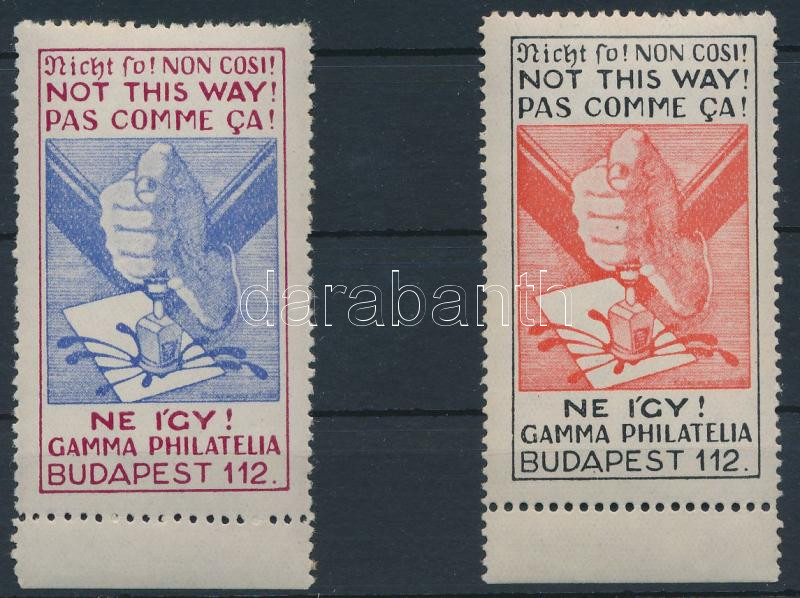 Leírás: 1925 Gamma filatélia: Ne így! 2 db 3 nyelvű levélzáró