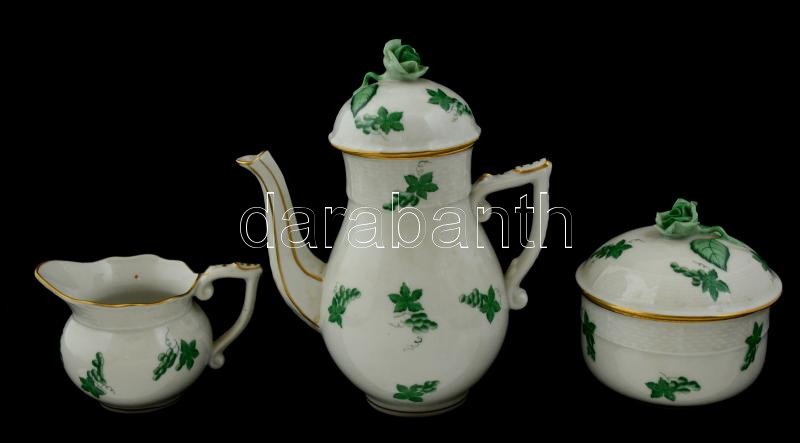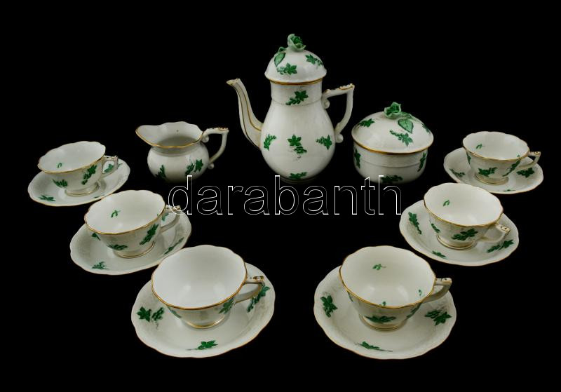 Leírás: Herendi szőlőlevél mintás mokkás készlet, kézzel festett, jelzett, kopott aranyozás