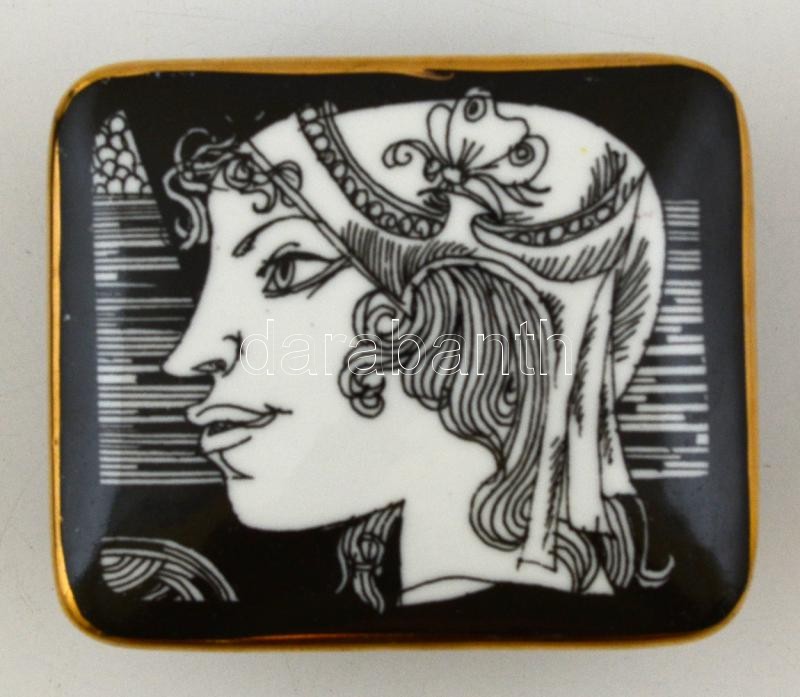 Leírás: Szász Endre által tervezett Hollóházi porcelán doboz, jelzett, kopott, 8×7 cm