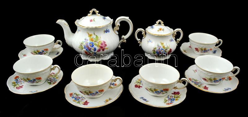 Leírás: Zsolnay virág mintás teás készlet, matricás, jelzett, hibátlan