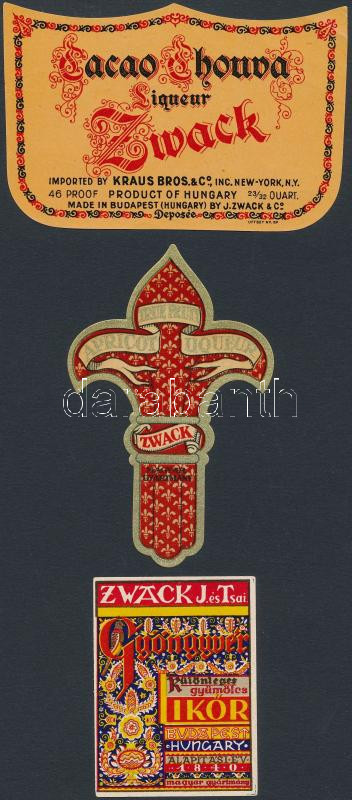 Leírás: 3 db Zwack italcímke, Gyöngyvér, Apricot Liqeur, Cacao Chouva, 7x5 cm.,10x6 cm.,7x10 cm.