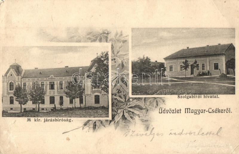 Leírás: Magyarcséke, Ceica; M. kir. járásbíróság, szolgabírói hivatal, Ritter Hermann kiadása / courthouses (EM)