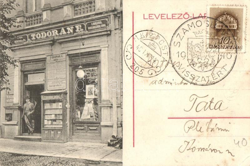 Leírás: Szamosújvár, Gherla; Todorán Ede könyvnyomdája és saját kiadású reklám lapja / printing shop, owner, advertisement, "1940 Szamosújvár visszatért" So. Stpl (EK)