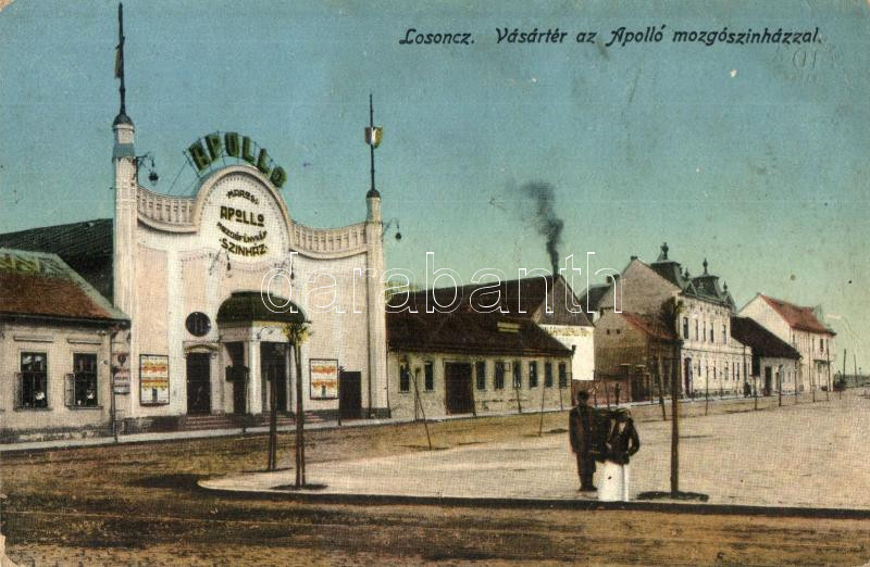 Losonc, Lucenec; Vásártér, Apolló mozi / market square, cinema (fl) https://www.darabanth.com/hu/283-Gyorsarveres/283.0/Kepeslapok/Felvidek~200007/Losonc-Lucenec-Vasarter-Apollo-mozi-market-square-cinema-fl~II1466827