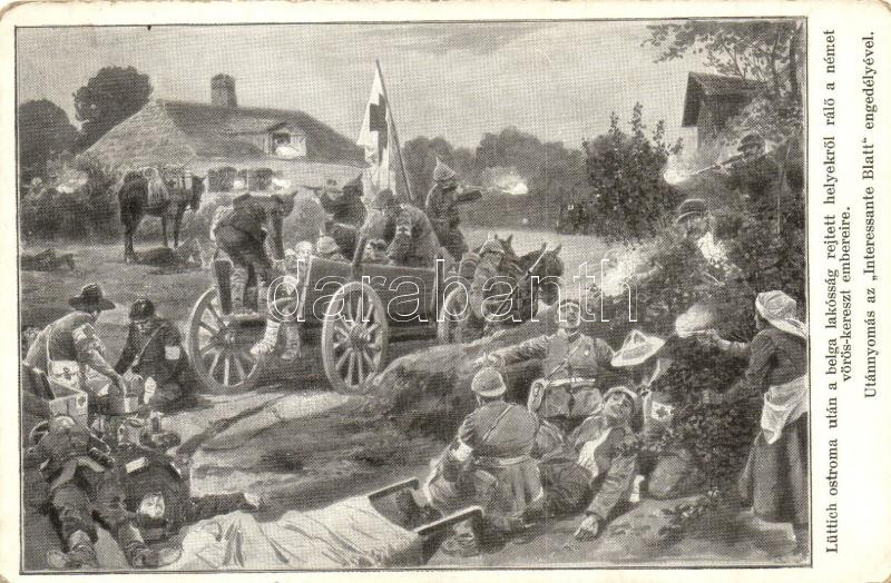 Lüttich ostroma után a belga lakosság rejtett helyekről rálő a német vörös-kereszt embereire / After the battle of Liege, Belgian citizens fire at the German Red Cross' men
