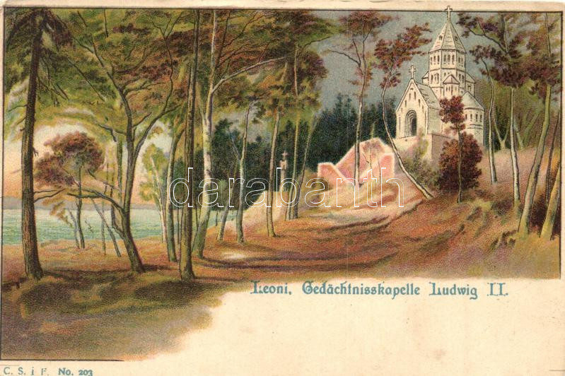 Leírás: Leoni am Strarnberger See, (Berg); Gedächtnisskapelle Ludwig II / Memorial Chapel of Ludwig II, C. S. i F. No. 203 litho (EB)