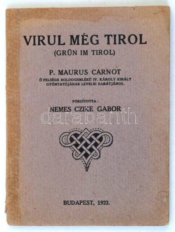 Carnot, Maurus: Virul még Tirol (Grün im Tirol). Bp., 1922, Élet. Tűzö... https://www.darabanth.com/hu/283-Gyorsarveres/283.0/Konyvek/Konyvek-Egyeb-ritkasagok~500002/Carnot-Maurus-Virul-meg-Tirol-Grun-im-Tirol-Bp-1922-Elet-Tuzott-papirkotesben-jo-~II1469263