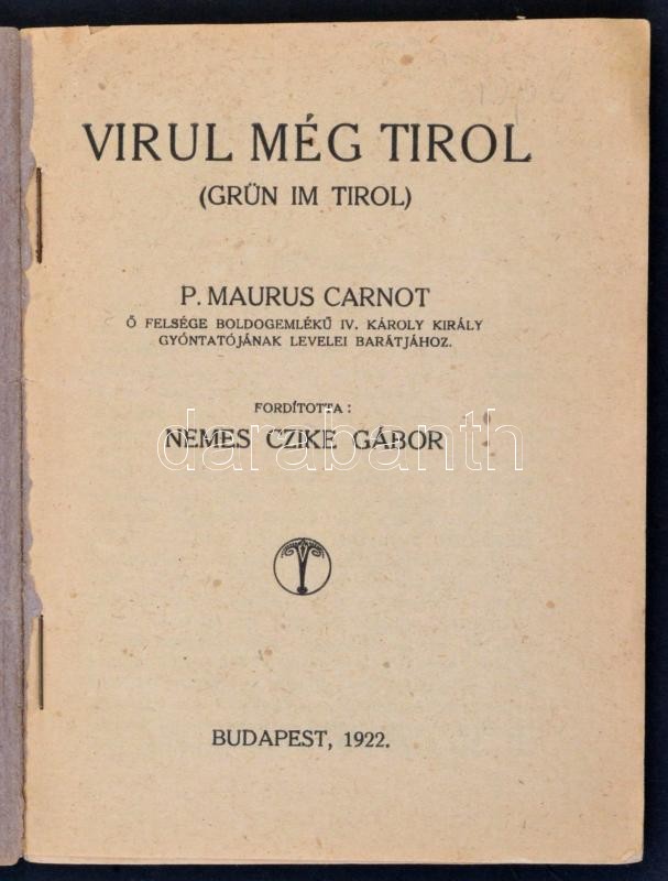 Leírás: Carnot, Maurus: Virul még Tirol (Grün im Tirol). Bp., 1922, Élet. Tűzött papírkötésben, jó állapotban.