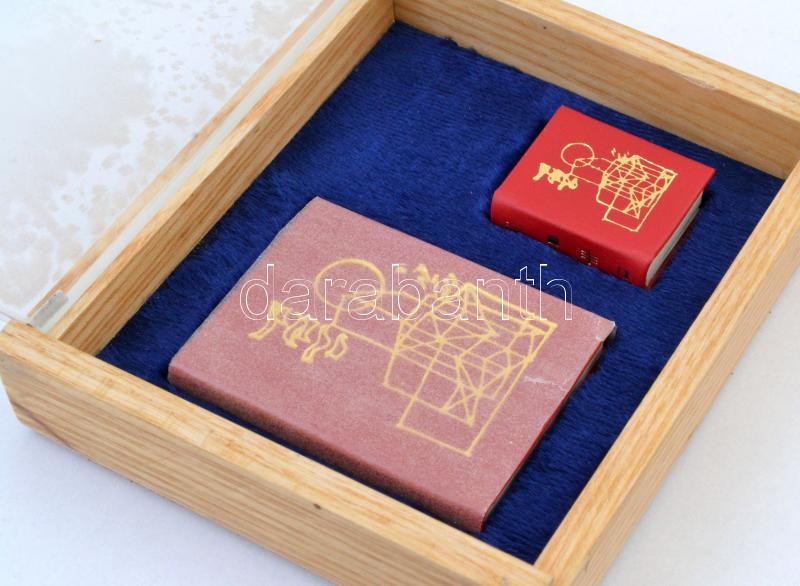 Új Megyei Pártszékház Borsodban. Miskolc, 1977, MSZMP Borsod Abaúj Zemplén megyei Bizottsága pártgazdasági és ügykezelési osztálya. Kiadói aranyozott műbőr kötés, mini- és makrokönyvek, díszcsomagolásban. Számozott (500/89. és 85.) példány. Készült a Nagy Októberi Szocialista Forradalom 60. évfordulója, a megyei pártbizottság székháza átádásnak ünnepélyes alkalmából. A plexi tető foltos.