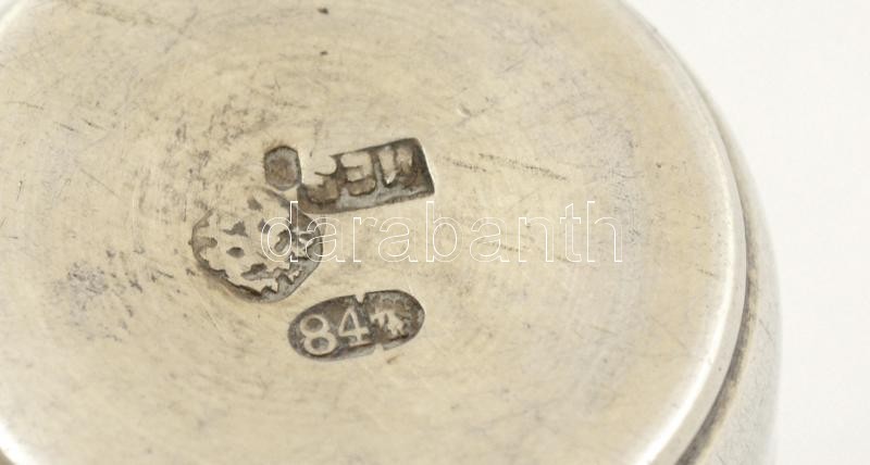 Leírás: Antik orosz ezüst(Ag) kupicás pohár, jelzett, mseterjeggyel(IEZ [= Izrail' Eszejevich Zahoder]), gravírozott díszítésekkel, nettó: 19,9 g, m: 4,5 cm