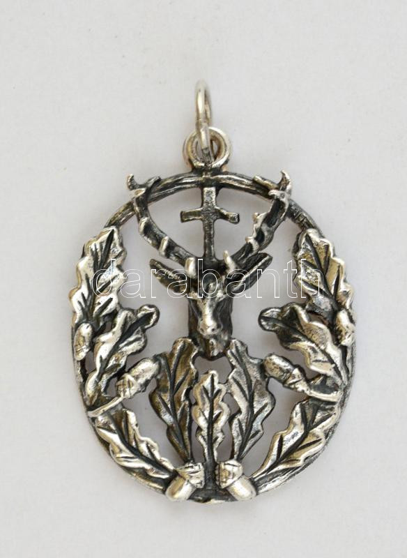 Leírás: Ezüst(Ag) "Hubertus" függő, jelzés nélkül, 4x2,8 cm, nettó: 7 g