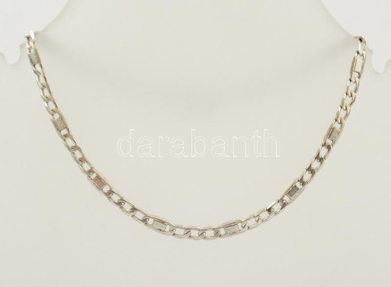 Ezüst(Ag) figaro karlánc, jelzett, h: 19,5 cm, nettó: 3,2 g https://www.darabanth.com/hu/283-Gyorsarveres/283.0/Nemesfem-Disztargyak-Orak-es-Ekszerek/Nemesfem-Disztargyak-Orak-es-Ekszerek~500001/EzustAg-figaro-karlanc-jelzett-h-19-5-cm-netto-3-2-g~II1463606