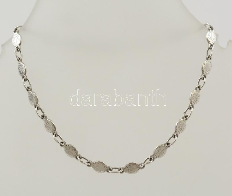 Ezüst(Ag) katicás karlánc, jelzett, h: 19,5 cm, nettó: 3,9 g https://www.darabanth.com/hu/283-Gyorsarveres/283.0/Nemesfem-Disztargyak-Orak-es-Ekszerek/Nemesfem-Disztargyak-Orak-es-Ekszerek~500001/EzustAg-katicas-karlanc-jelzett-h-19-5-cm-netto-3-9-g~II1463566