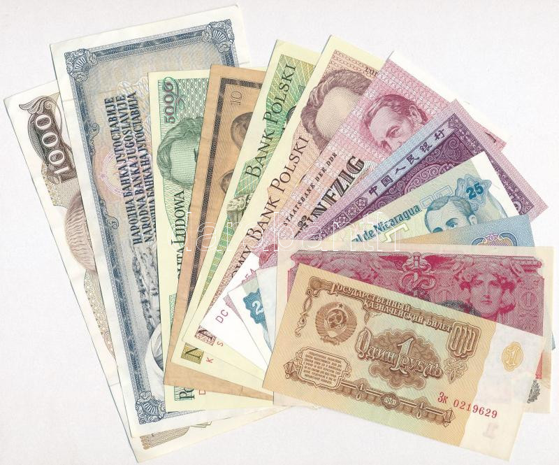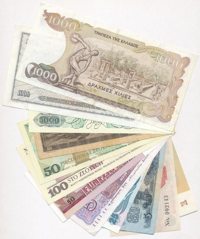 12db vegyes, nagyrészt külföldi bankjegy, közte Kína 1980. 5J, Görögország 1987. 1000D T:I-III