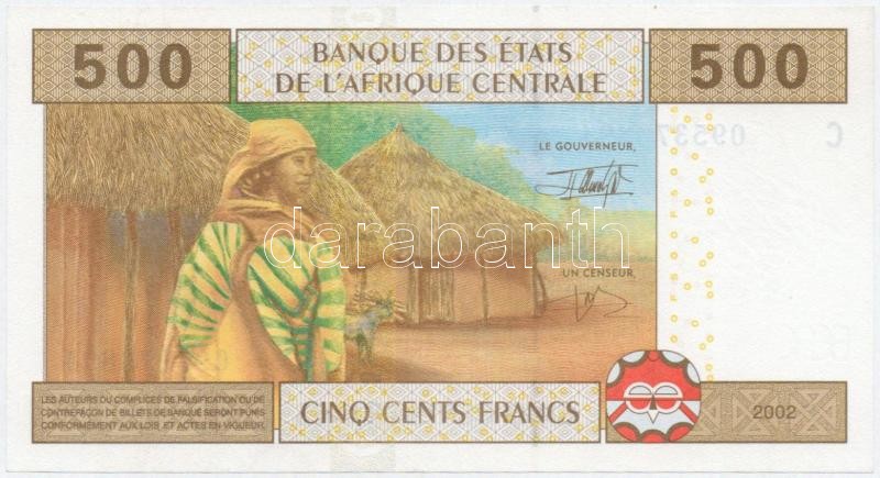 Central African States ... https://www.darabanth.com/hu/283-Gyorsarveres/283.0/Numizmatika/Kulfoldi-bankjegyek~300012/Kozep-Afrikai-Allamok-Csad-2002-500Fr-TI---Central-African-States-Chad-2002-500-Francs-C~II1469311
